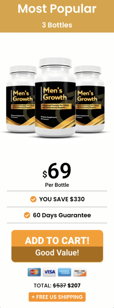 Men’s Growth® is crafted with a clinically researched blend of natural extracts and minerals, carefully selected to restore stamina, support healthy testosterone levels, and promote long-term male vitality. This advanced formula is non-GMO, stimulant-free, and safe for daily use.